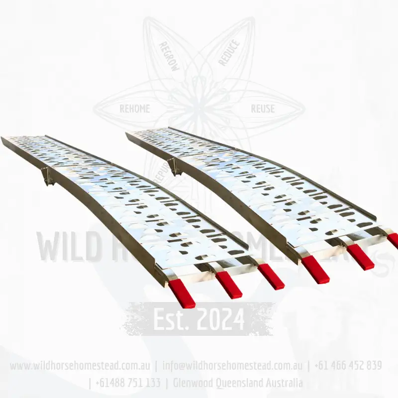 Loading ramps x 2 (680kg max capacity (340kg per ramp), 2.3m long – ideal for motorbikes and ride on mowers)