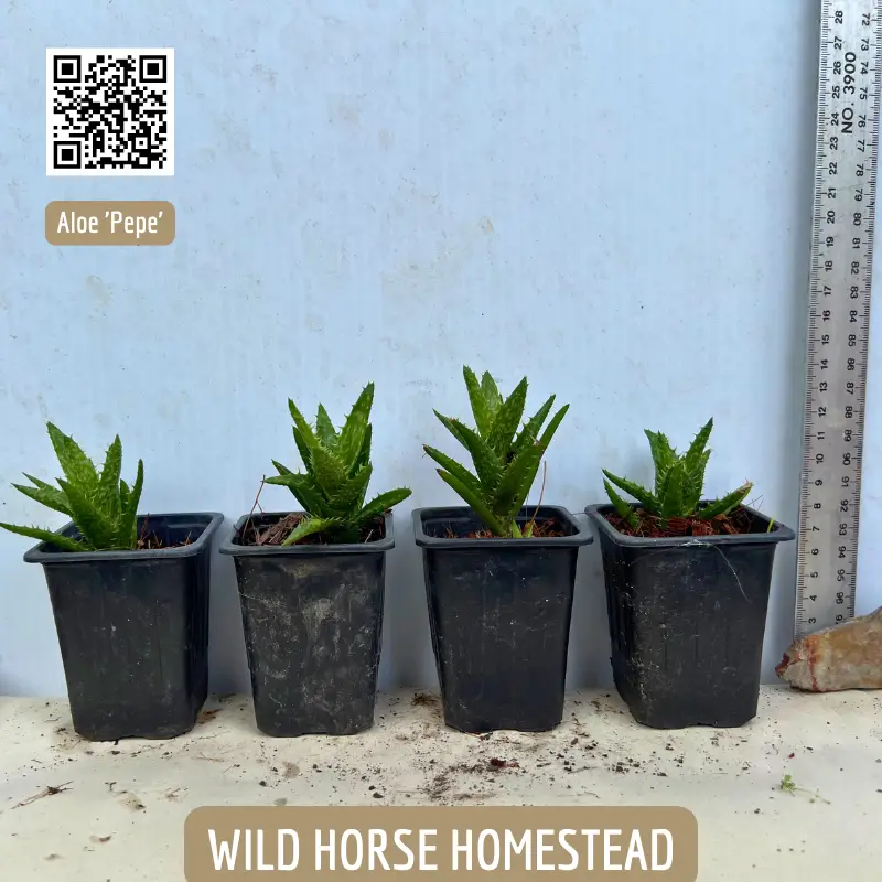 Aloe ‘Pepe’ (A. descoingsii x A. haworthioides) – A neat, miniature Aloe of slender, dark green leaves with toothed edges. Tolerates heat well, but it can also grow indoors in well drained soil. This amazing plant is striking and tiny, barely reaching 10cm across with a towering, clumping growing habit. Drought tolerant and hardy with a cluster of pink-orange to orange-red flowers this plant copes well with some basic neglect.