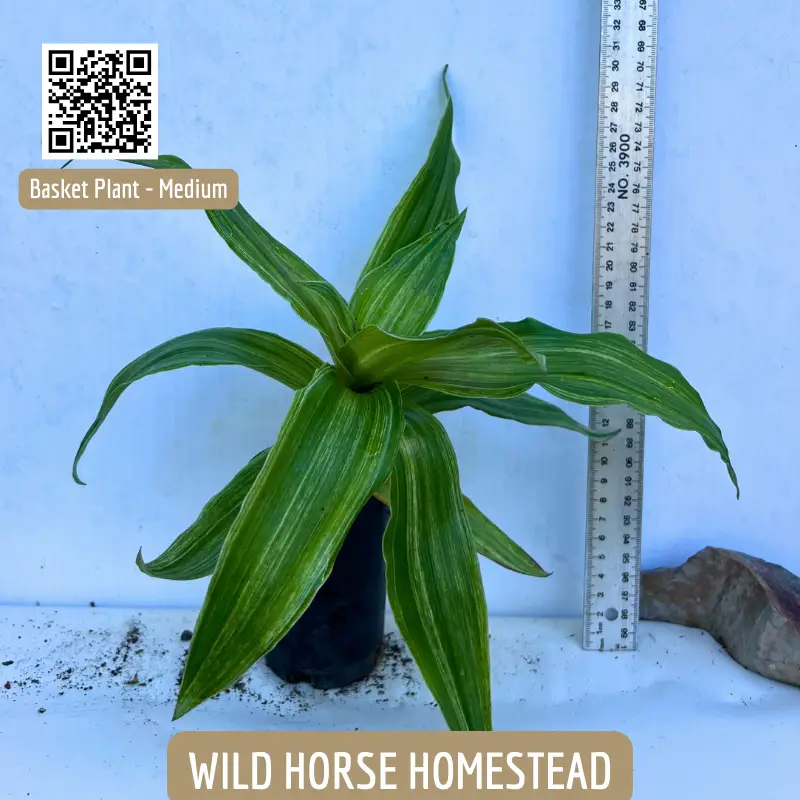 Basket Plant (Callisia fragrans/Callisia fragrans Melnikoff) or the name “False Bromeliad” is occasionally used in reference to this plant. In bright light conditions, the leaves lay down and give it the look of a bromeliad cluster. But in partial sun to shade, it resembles a dracaena with its more upright leaf pattern.