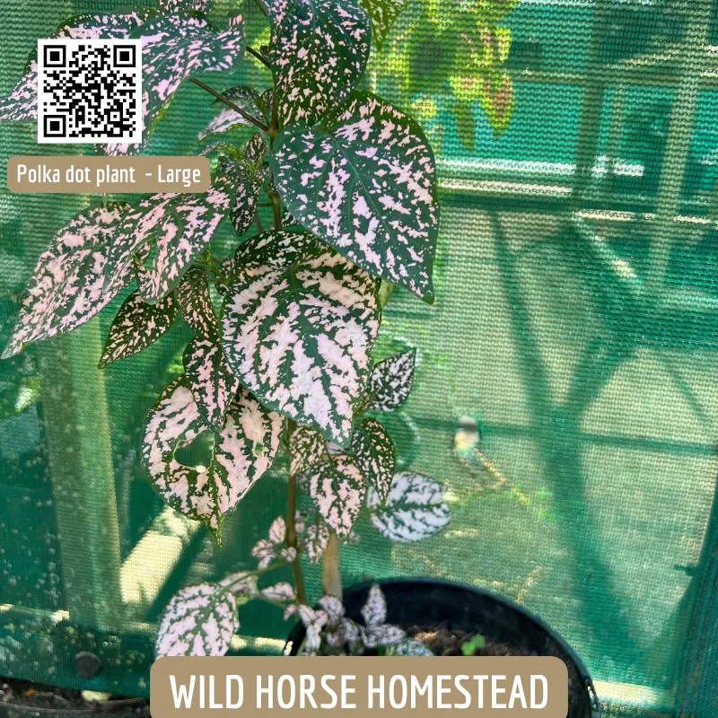 Polka dot plant (Hypoestes phyllostachya) Popular indoor plant due to striking foilage. Place in bright, indirect light and well drained, fertile soil. Can grow to 90cm tall and 60cm wide.